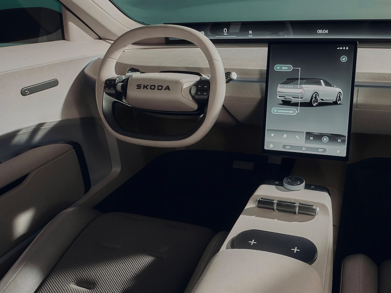 Il design minimalista e moderno si distingue per linee pulite e un volto completamente nuovo, caratterizzato da una maschera Tech-loop che dona un aspetto più deciso e innovativo. L’aerodinamica ottimizzata favorisce un’alta efficienza, prolungando l’autonomia anche durante i viaggi più lunghi. L’interno del veicolo rappresenta una rivoluzione estetica e funzionale. Penetrando nel cuore del concept, il nuovo abitacolo si contraddistingue per un layout minimalista e pratico, incentrato sulla massima spaziosità e comfort. Offre oltre 650 litri di spazio per i bagagli ed un’interfaccia utente di fatto avveniristica, con un sistema di infotainment costituito dal nuovo display Horizon, lungo più di un metro, che attraversa l’intera plancia e si integra con un secondo schermo verticale centrale. Il sistema di intelligenza artificiale Laura lavora da assistente personale, offrendo supporto durante il viaggio, condividendo informazioni sulla strada e assistendo nelle attività quotidiane.
